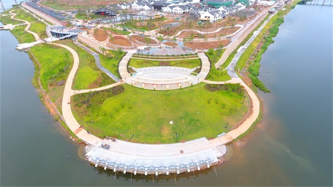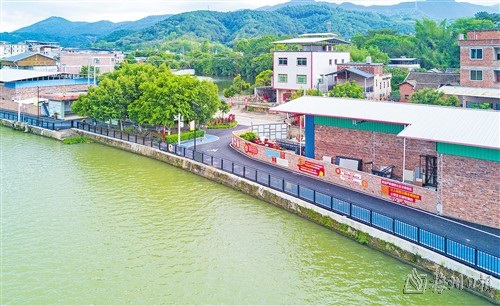 長(zhǎng)沙圩鎮(zhèn)碧道鋪設(shè)了瀝青并劃分跑道和自行車(chē)道,“顏值”再獲提升。(林翔?攝)位于梅江河圩鎮(zhèn)段碧道沿線(xiàn)的紅色休閑廣場(chǎng)效果....
